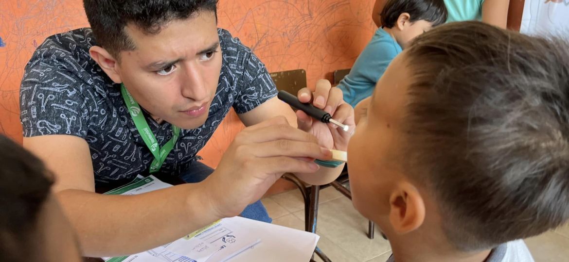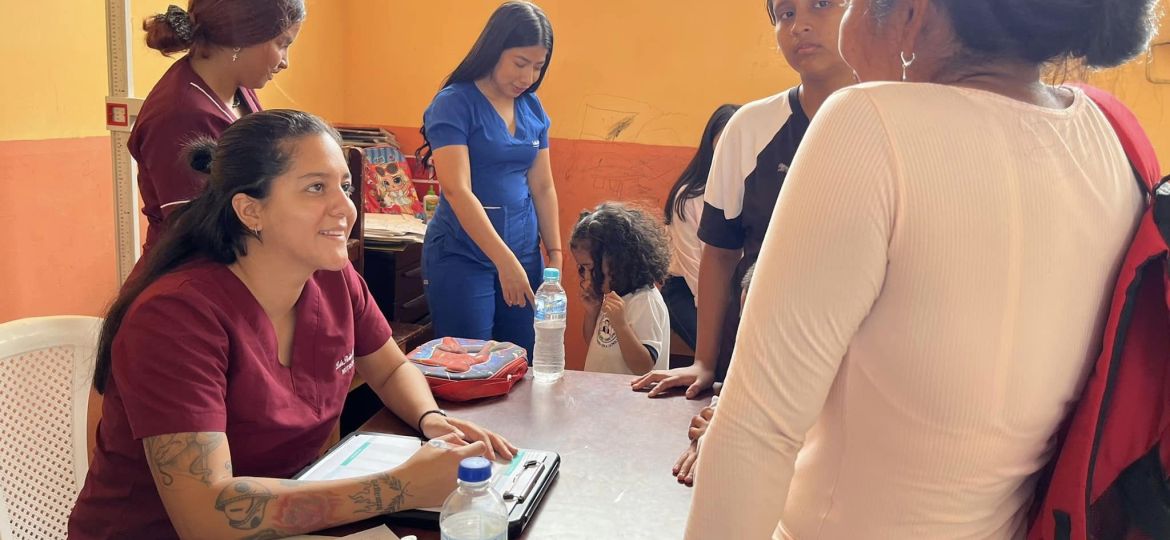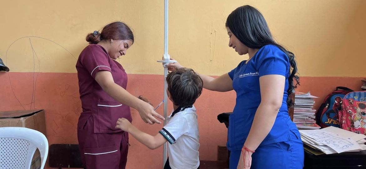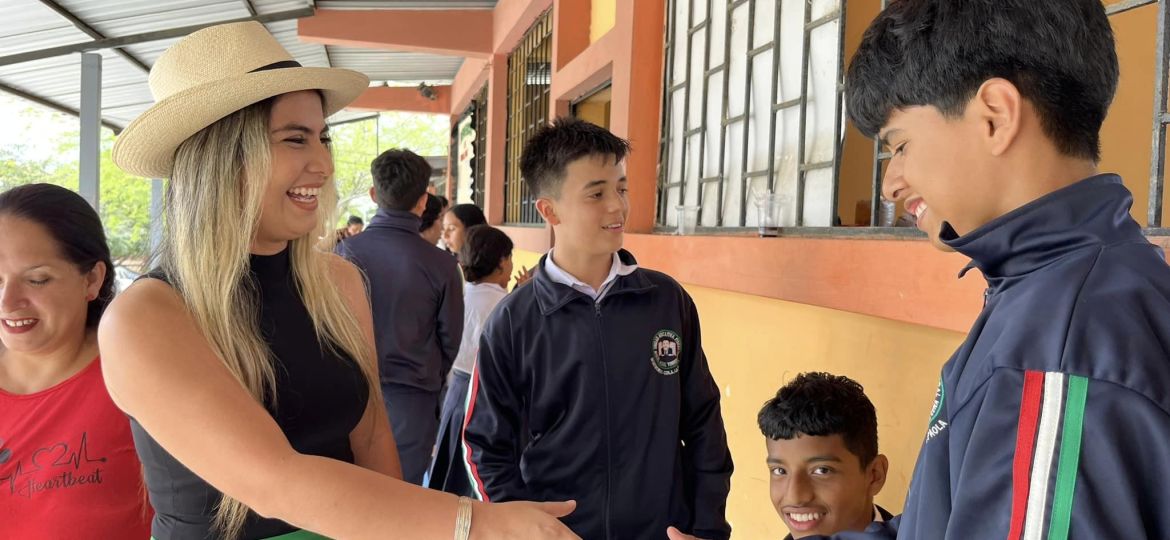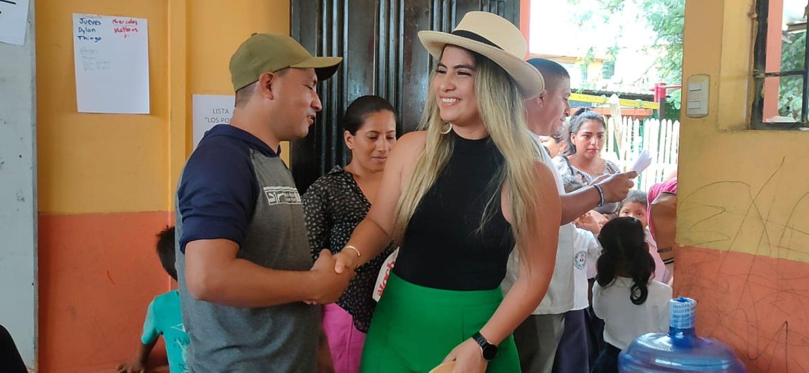 Valeria Mendoza junto a su equipo de profesionales de la salud del Patronato Municipal en conjunto con médicos de la Prefectura de Manabí brindaron atención en medicina general, optometría, nutrición y odontología a los estudiantes de esta unidad educativa de la Ciudadela Las Paolas.