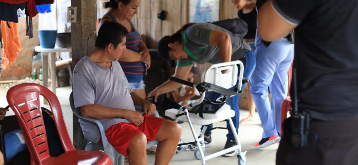 Hoy llegamos a la parroquia Leonidas Proaño y Los Bajos, aquí junto a la prefectura entregamos ayudas técnicas. Antes nuestro equipo de USMC se encargó de identificar los casos .